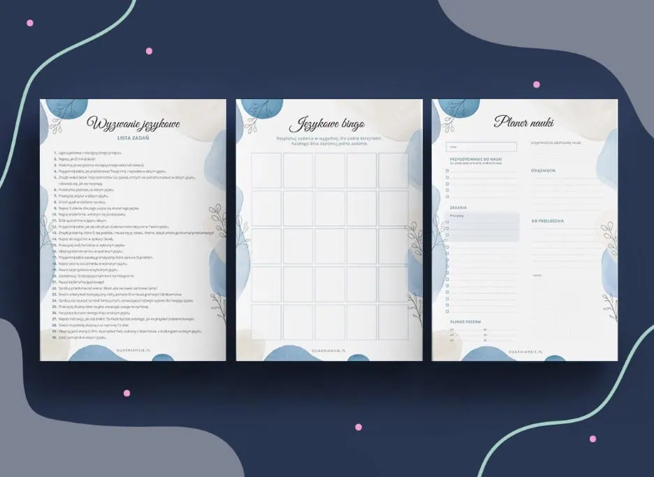 - Planer nauki języków — planer językowy do druku za darmo by zmotywować się do nauki języków