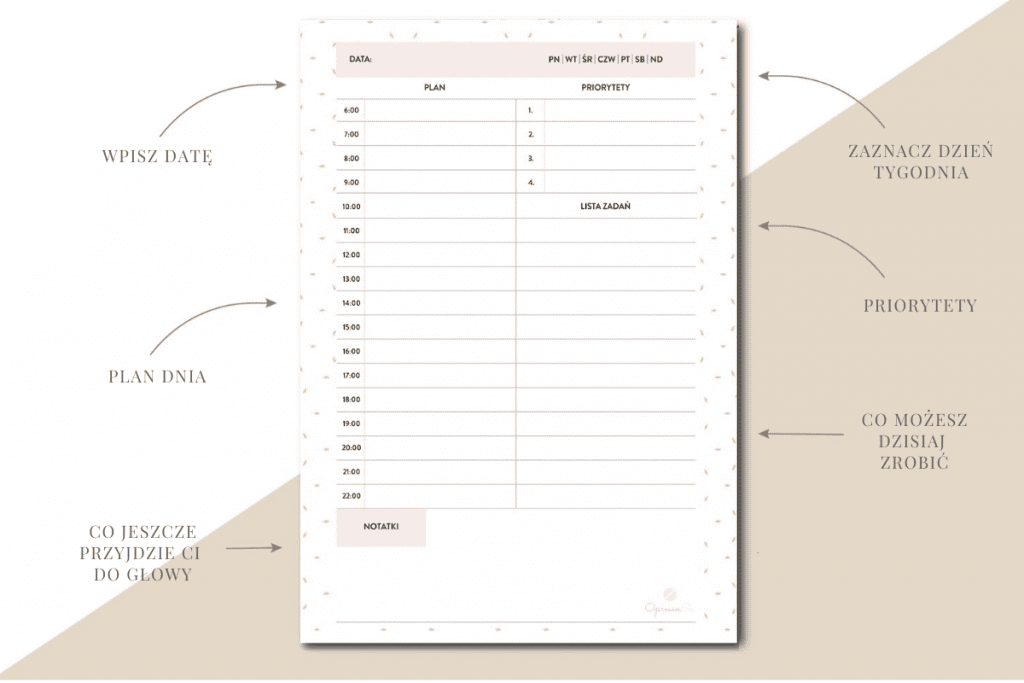 W planerze dziennym do wydrukowania znajdziesz: