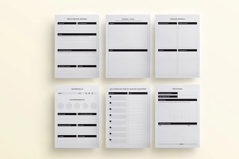 Biznes planer to zestaw szablonów, który pomoże Ci rozwijać Twoją firmę. Znajdziesz w nim różne planery w formacie A5 (nadają się idealnie do większości planerów i organizerów), które ułatwią Ci zaplanować Twoje działania, a także przekuć plany na akcje. Zestaw ten został zaprojektowany zarówno dla osób, które zaczynają swój biznes, jak i osób które prowadzą już działalność przez jakiś czas i chcą ustrukturyzować swoje działania lub przemyśleć kierunek w jakim zmierza biznes.