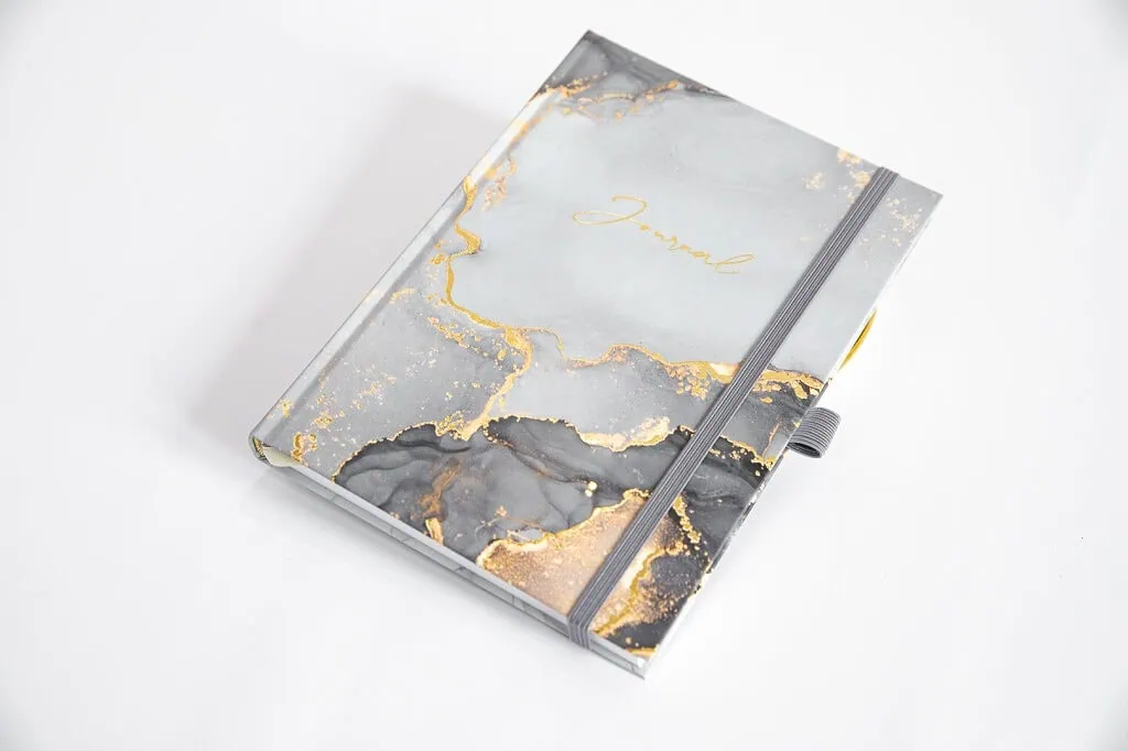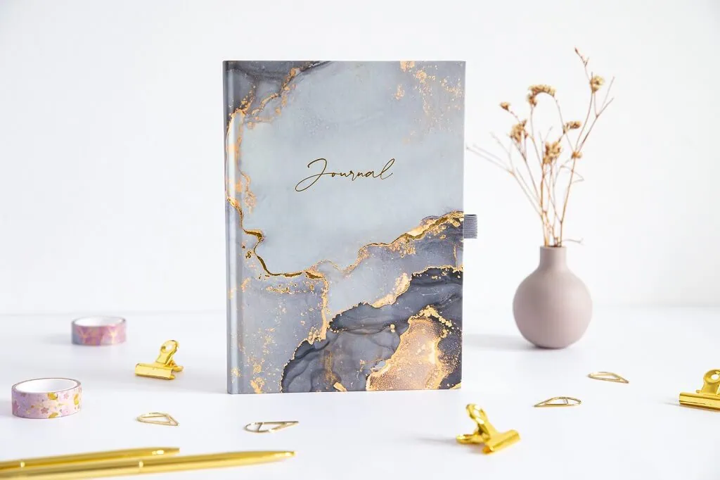 Notes ma minimalistyczną i elegancką okładkę w odcieniach szarości. Piękny marmurkowy wzór ze złoceniami z pewnością będzie cieszyć oko!