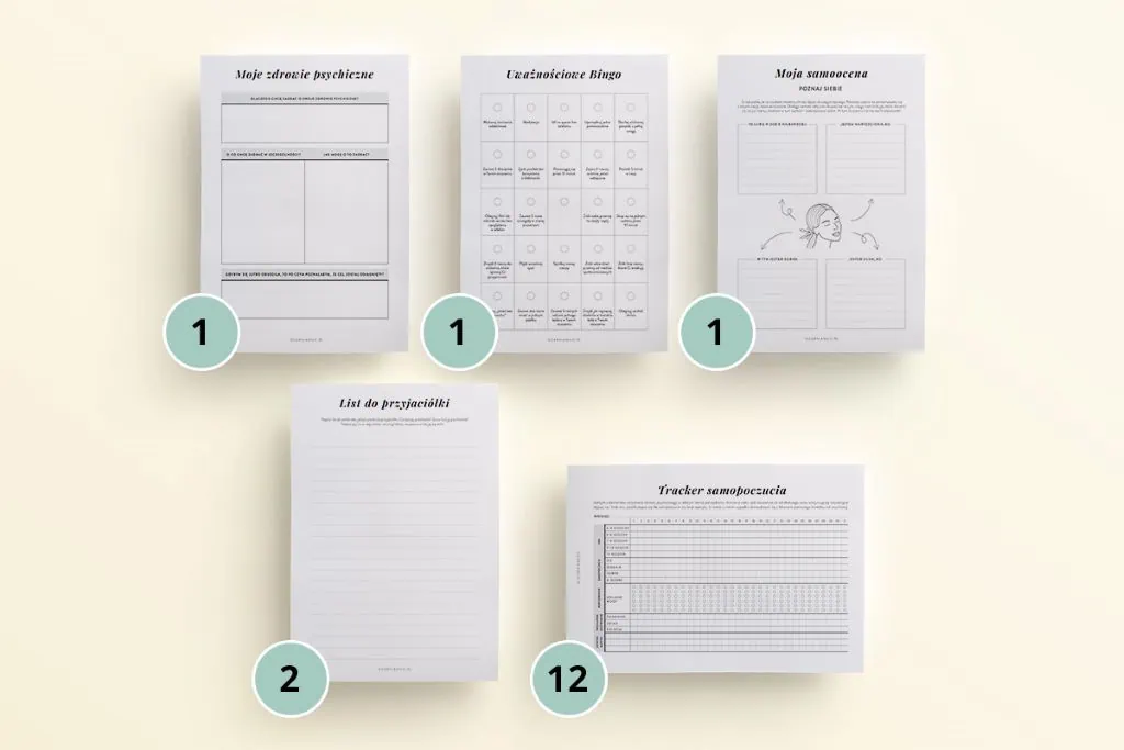 – Uważnościowe bingo – „Zauważ 5 dźwięków w Twoim otoczeniu” lub „Posiedź 5 minut w ciszy” i wiele więcej pomysłów na zadbanie o siebie