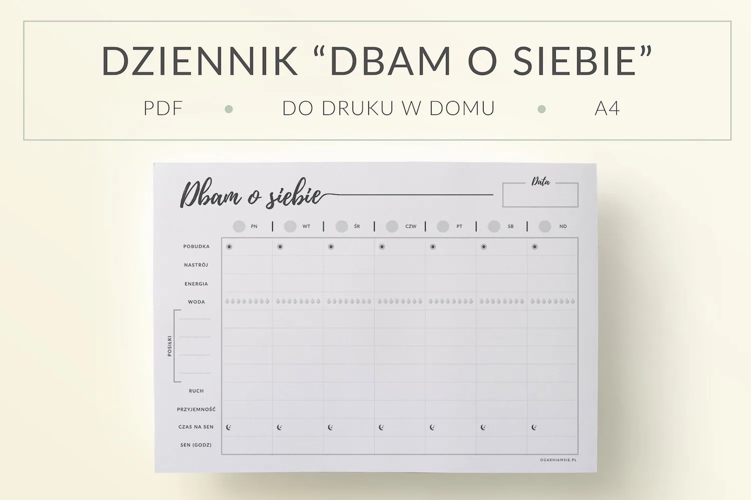 Dziennik „Dbam o siebie” do druku | Format A4