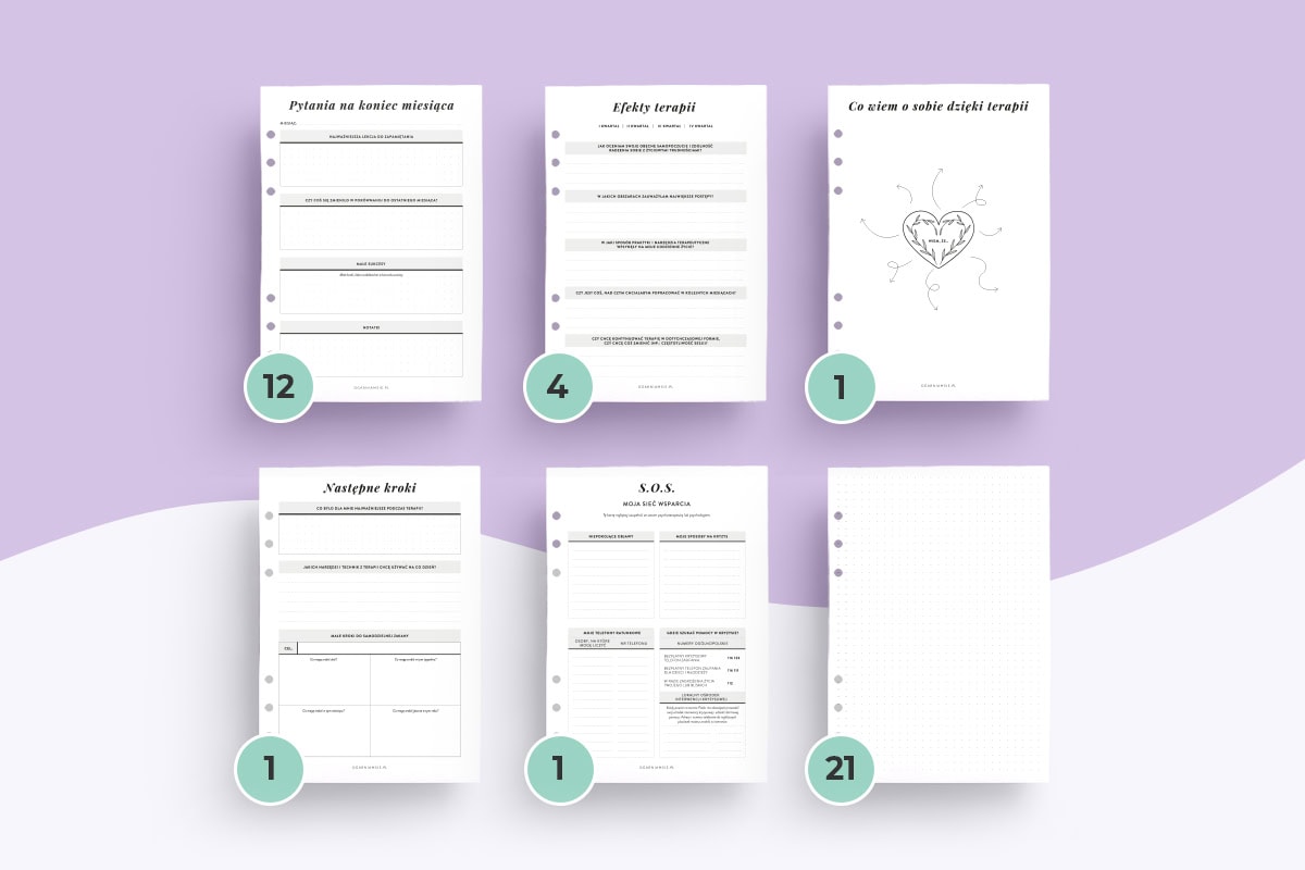 A co najlepsze – dziennik możesz wpiąć do swojego organizera i rozbudować o kolejne dodatki wspierające zdrowie psychiczne. Dzięki temu wszystkie ważne notatki, ćwiczenia i dokumenty terapeutyczne masz zawsze w jednym miejscu – uporządkowane i bezpieczne. To więcej niż planer. To spokojna przestrzeń tylko dla Ciebie. Zaprojektowany tak, żeby wspierać, a nie przytłaczać.