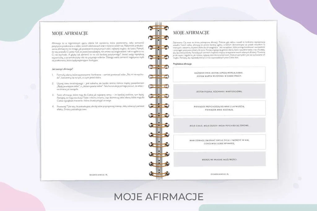 – miejsca na Twoje afirmacje