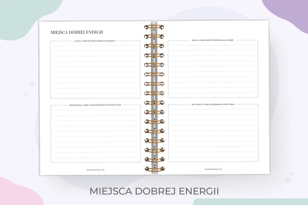Dziennik Wdzięczności staje się integralną częścią Twojej codzienności, stanowiącą oazę spokoju w szybkim tempie życia. Dla młodej kobiety, dbającej o siebie i rozwijającej swoją duchowość, to nie tylko notes wdzięczności, to manifestacja troski o siebie. Wypełniając go pozytywnymi afirmacjami i tworząc tablicę marzeń, budujesz swoją przestrzeń self-care, odzwierciedlającą Twoje cele i marzenia. Dzięki naszemu dziennikowi wdzięczności, każdy dzień staje się okazją do odkrywania piękna w codzienności. Rozszerzenie dziennika wdzięczności o miejsce na marzenia oraz afirmacje sprawia, że jest to encyklopedia pozytywnych myśli, która ma za zadanie wesprzeć się w drodze po dobre samopoczucie i samoświadome życie i celebrowanie dobrych momentów.