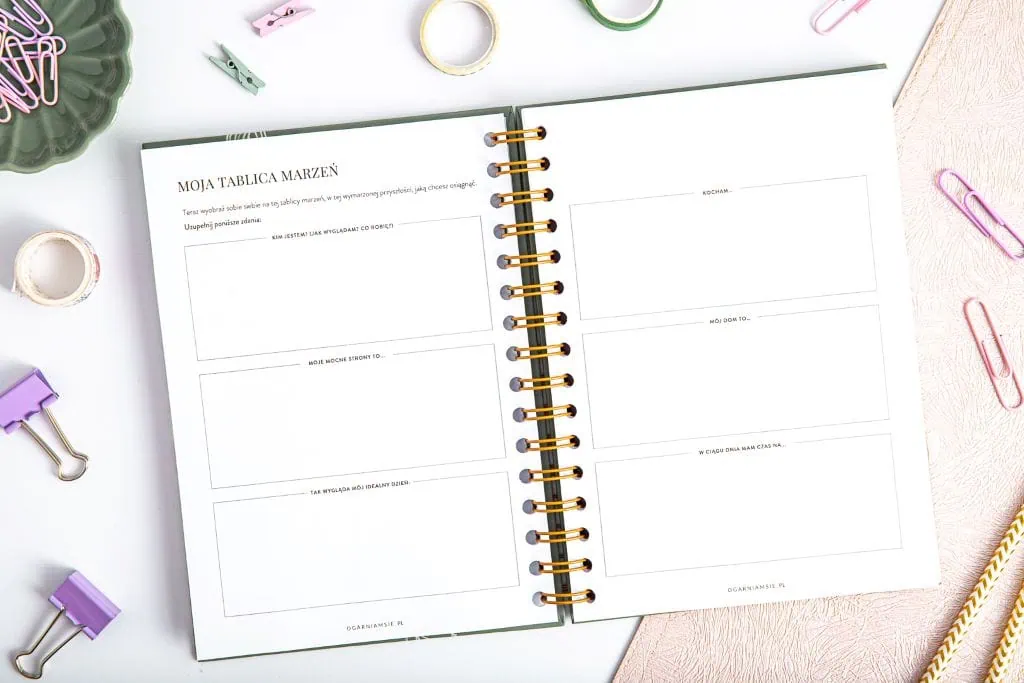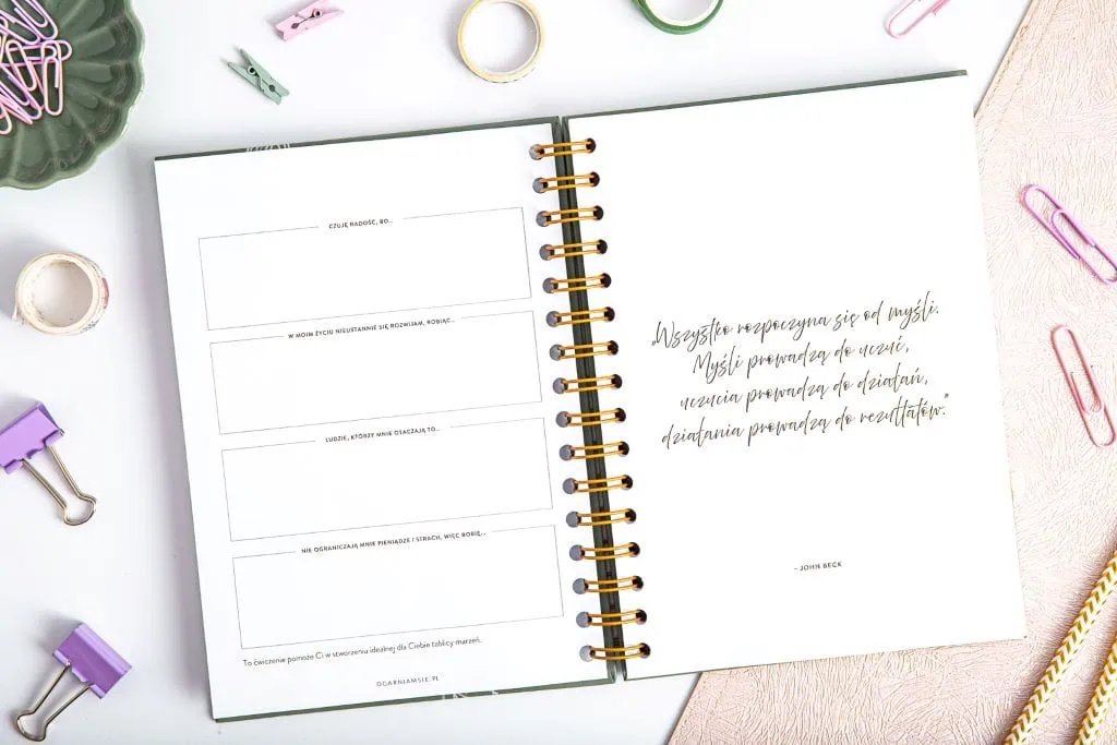 - Zajmij się nie tylko wdzięcznością - znajdziesz też miejsce na tablicę marzeń oraz życiowe manifestacje