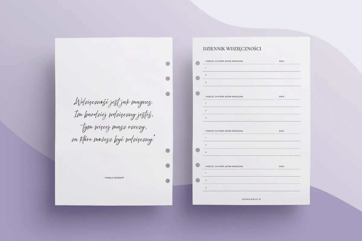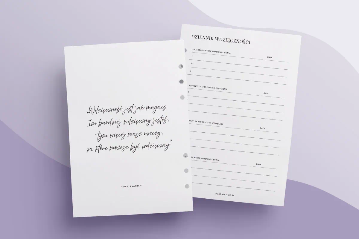 Dziennik wdzięczności – wkład do organizera