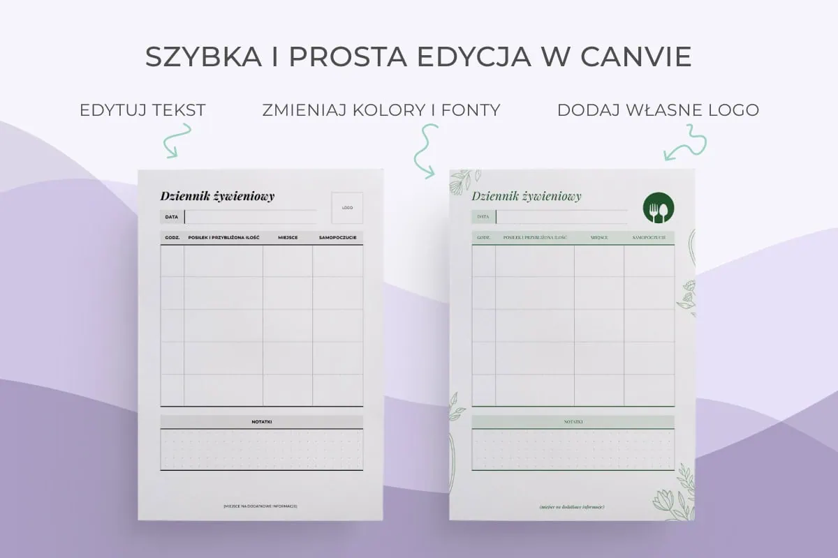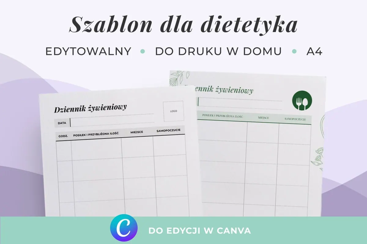 Edytowalny dziennik żywnieniowy dla dietetyka
