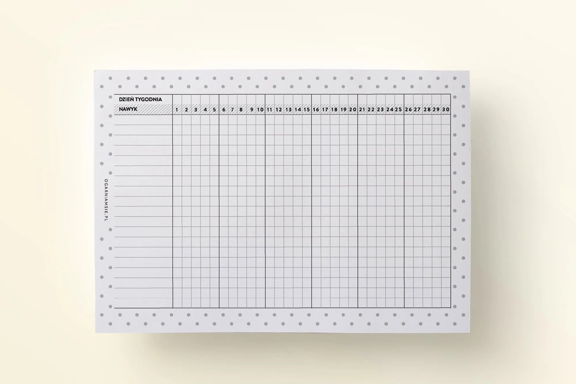 Szablony są przygotowane do druku w warunkach domowych. Habit tracker PDF jest w formacie A5. Wydrukuj, włóż do ulubionego zeszytu, trzymaj na desce z klipem albo wepnij do ulubionego organizera.