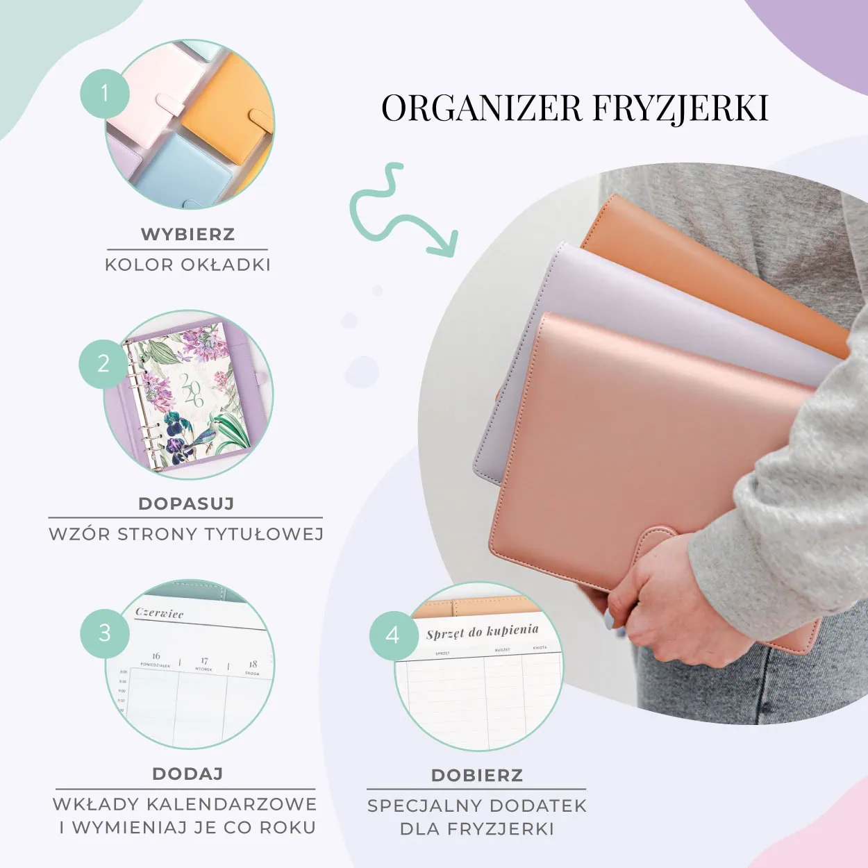 Organizer oraz wkłady, które zamówiłeś przyjdą do Ciebie nie połączone - to znaczy, że TY samodzielnie układasz swój środek organziera! Możesz zrobić to w dowolny sposób i cieszyć się produktem dostosowanym do swoich potrzeb i upodobań.Kalendarz Fryzjerki – Twój niezawodny organizator w codziennej pracy