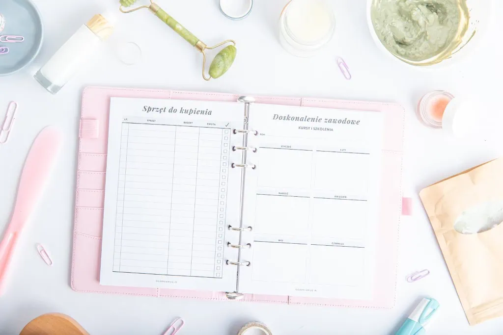 Zabiegi pielęgnacyjne, konsultacje, rezerwacje, zamówienia produktów – Twój dzień w gabinecie jest pełen ruchu i zmian? Organizer Kosmetyczki to planer, który pomoże Ci ogarnąć wszystko: od terminarza wizyt po prowadzenie bazy klientek i notatki z każdej usługi.