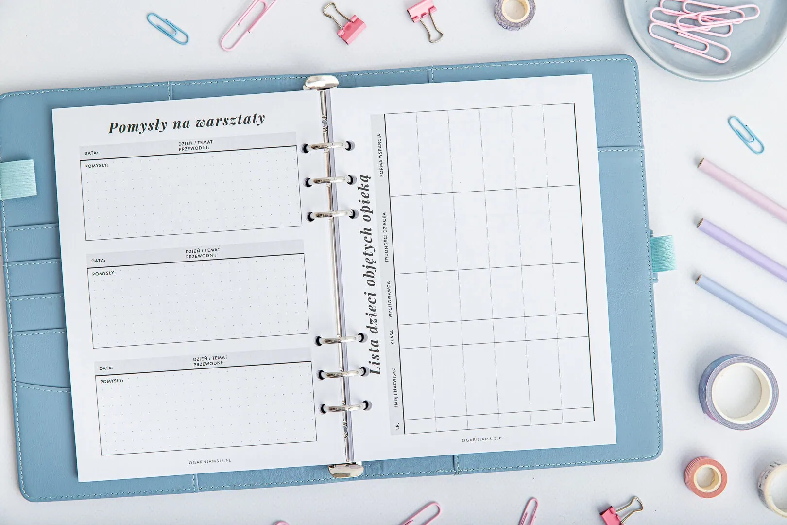 W organizerze znajdziesz specjalne szablony zaprojektowane z myślą o codzienności pedagoga szkolnego. Wiemy, że Twoja praca jest pełna wyzwań – i że wygląda zupełnie inaczej niż zajęcia przy tablicy.