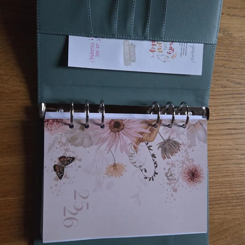 Okładka organizera jest "cruelty free" - wykonana jest z ekoskóry, czyli skóry niezwierzęcej 🌿.