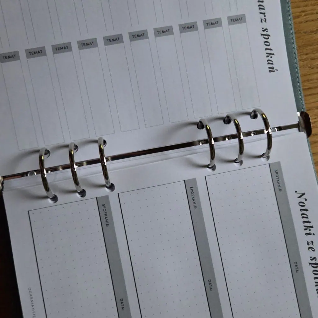 - Potrzebujesz więcej miejsca na notatki, mniej na zebrania? Wypinasz zbędne strony i dodajesz to, co ułatwia Ci pracę.