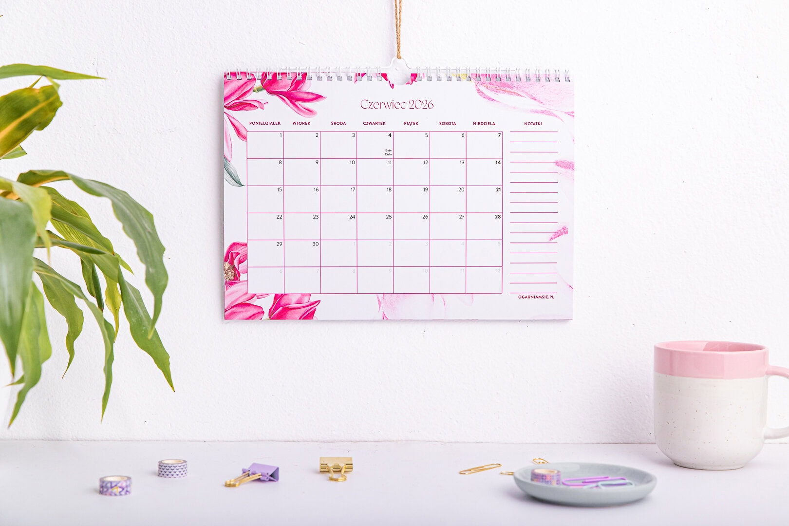 Rok naprawdę zyskuje rytm, gdy wszystko masz rozpisane w jednym miejscu. Ten kalendarz ścienny łączy przejrzystość i estetykę – od stycznia do grudnia 2026 każdy miesiąc widzisz na osobnej karcie, z miejscem na notatki przy każdym dniu. Po prawej stronie znajdziesz też dodatkową przestrzeń na notatki, żeby nic nie umknęło.