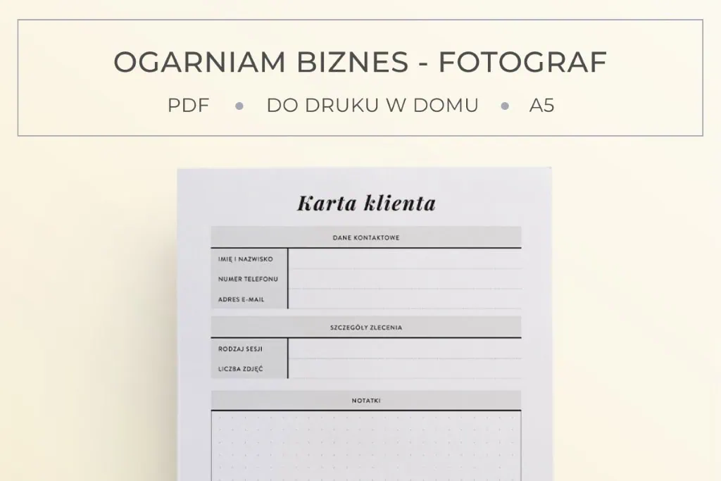 Karta klienta dla fotografa do druku | Ogarniam biznes