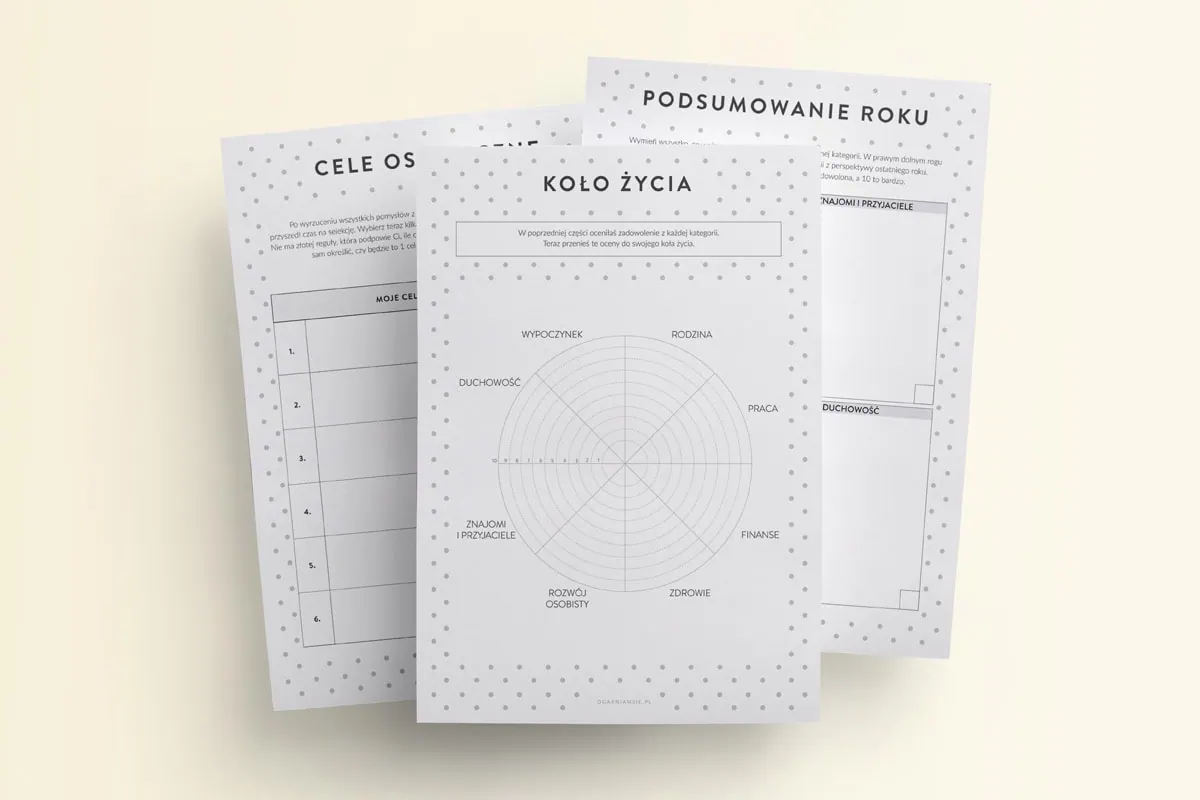 Life Planner to zestaw szablonów gotowych do wydrukowania w domu, które pomogą Ci podsumować ostatni rok, przeanalizować to co dla Ciebie jest ważne, ocenić różne obszary Twojego życia, a także zaplanować cele na najbliższe trzy miesiące i pchnąć Cię do działania.