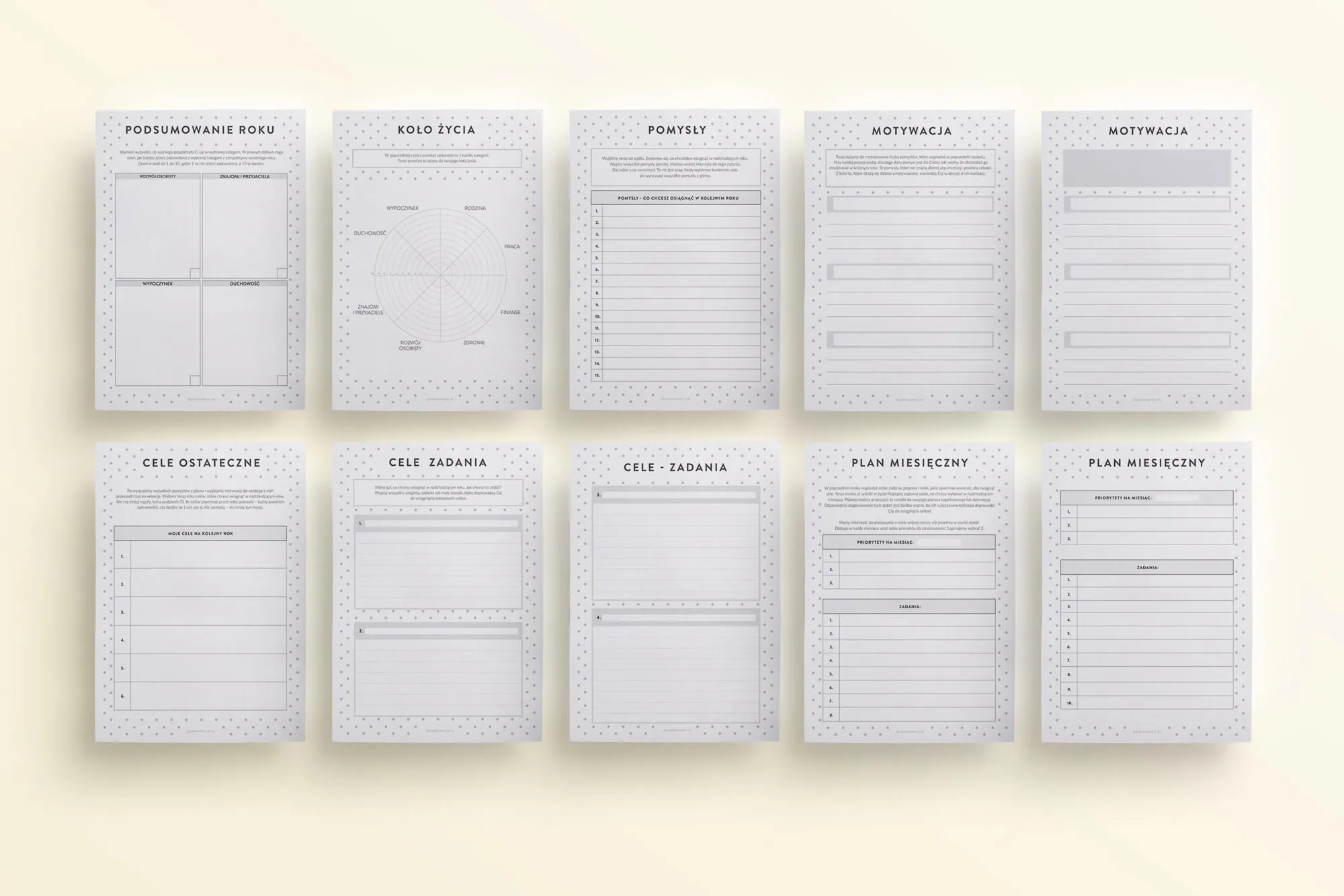 Otrzymasz pliki PDF o wymiarach A5 do druku.