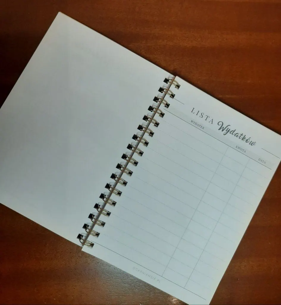 Kolejna zaleta to rozmiar A6 – dzięki temu kieszonkowemu wydaniu nie będziesz mieć problemu, żeby notes mieć zawsze ze sobą i móc zapisywać na bieżąco wszystkie wydatki! Ogarnij swój portfel!