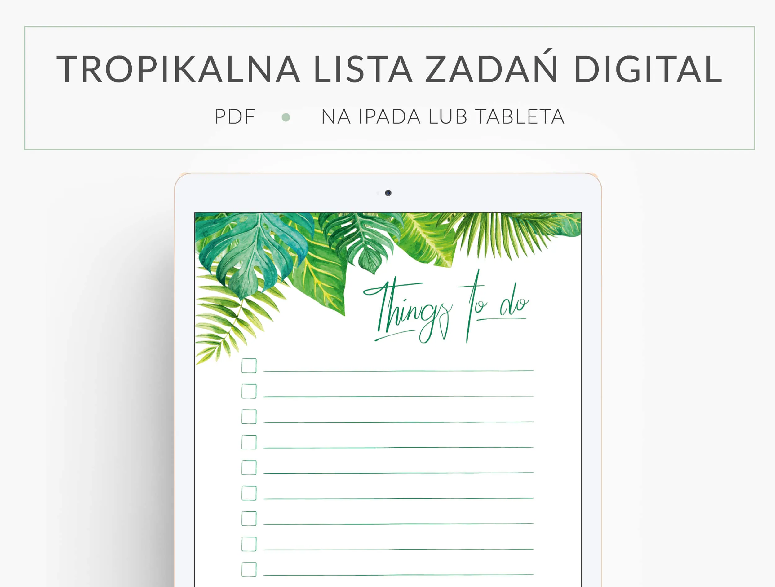 Najniższa cena w ostatnich 30 dniach: 14.90złPlanuj i ogarniaj zadania z tropikalną listą „To do” na Twojego Ipada. Piękna, ozdobiona tropikalnymi liśćmi plansza idealnie się sprawdzi w codziennym ogarnianiu rzeczywistości. Jest to wersja cyfrowa, więc możesz używać ją wygodnie na swoim tablecie.