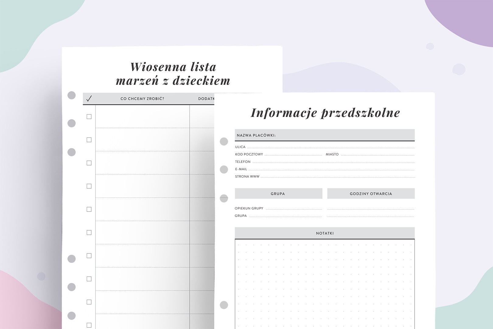 Mama przedszkolaka – wkład do organizera
