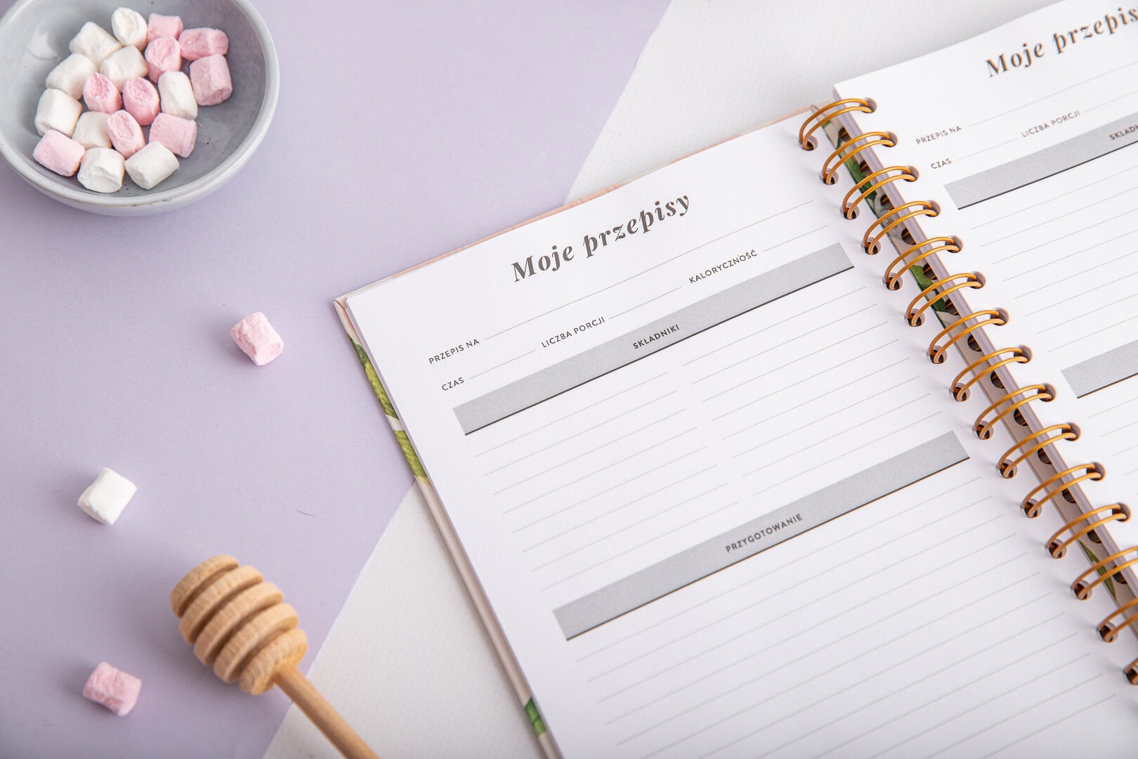 Przepiśnik „Moje przepisy” to zeszyt na przepisy z pięknie zaprojektowaną okładką. W środku znajdziesz miejsce na zapisywanie Twoich ulubionych przepisów, pomysłów na potrawy oraz przelicznik kuchenny, dzięki któremu szybko przeliczysz ile gram ma 1 łyżka oleju, albo ile łyżek to pół szklanki.