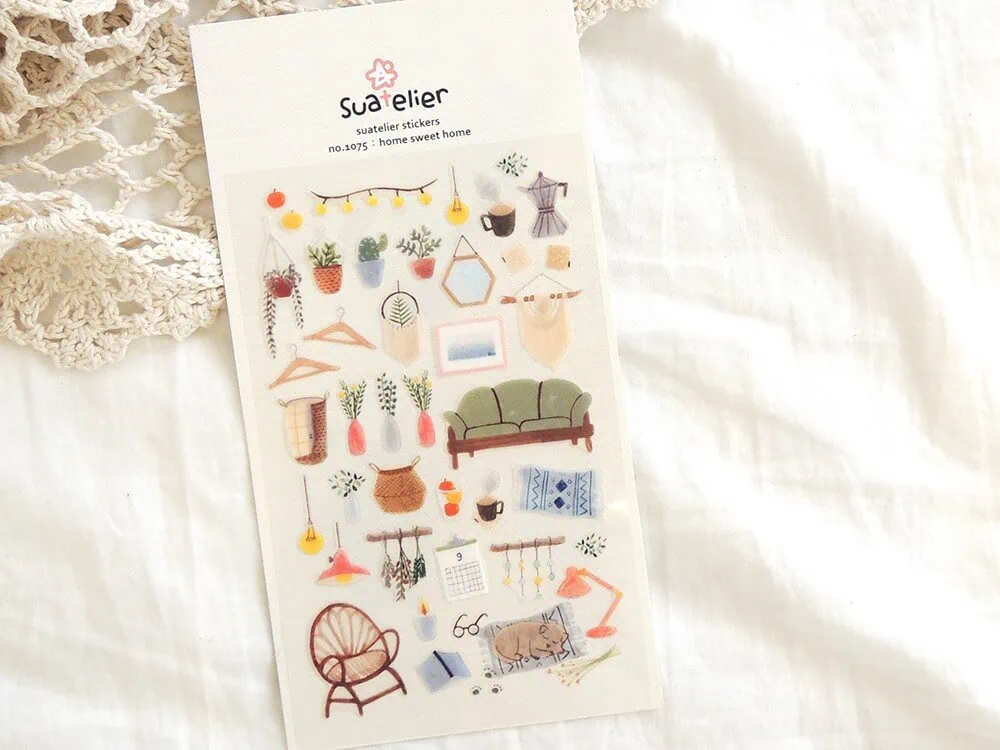 Zestaw naklejek zawiera jedną planszę pełną domowych i cieszących oko naklejek.
