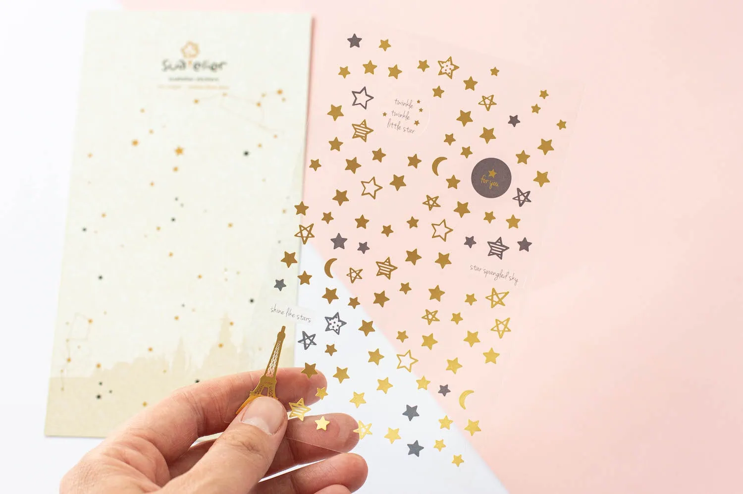 Najniższa cena w ostatnich 30 dniach: 9.99złZestaw błyszczących naklejek do planera i bullet journal „Paryskie niebo” to idealny sposób na ozdobienie Twoich notatek. Gwiazdki w różnych kształtach i rozmiarach, razem z półksiężycem i Wieżą Eiffla, tworzą wyjątkową kompozycję, która doda Twojemu planerowi odrobinę paryskiego uroku. Połyskująca powierzchnia naklejek sprawia, że stanowią one elegancki i stylowy akcent. Dzięki nim w prosty sposób oznaczysz ważne zadania, stworzycie piękne listy do zrealizowania czy po prostu udekorujesz swój planner na co dzień. To doskonały wybór dla wszystkich miłośniczek nietuzinkowych akcentów w organizacji!