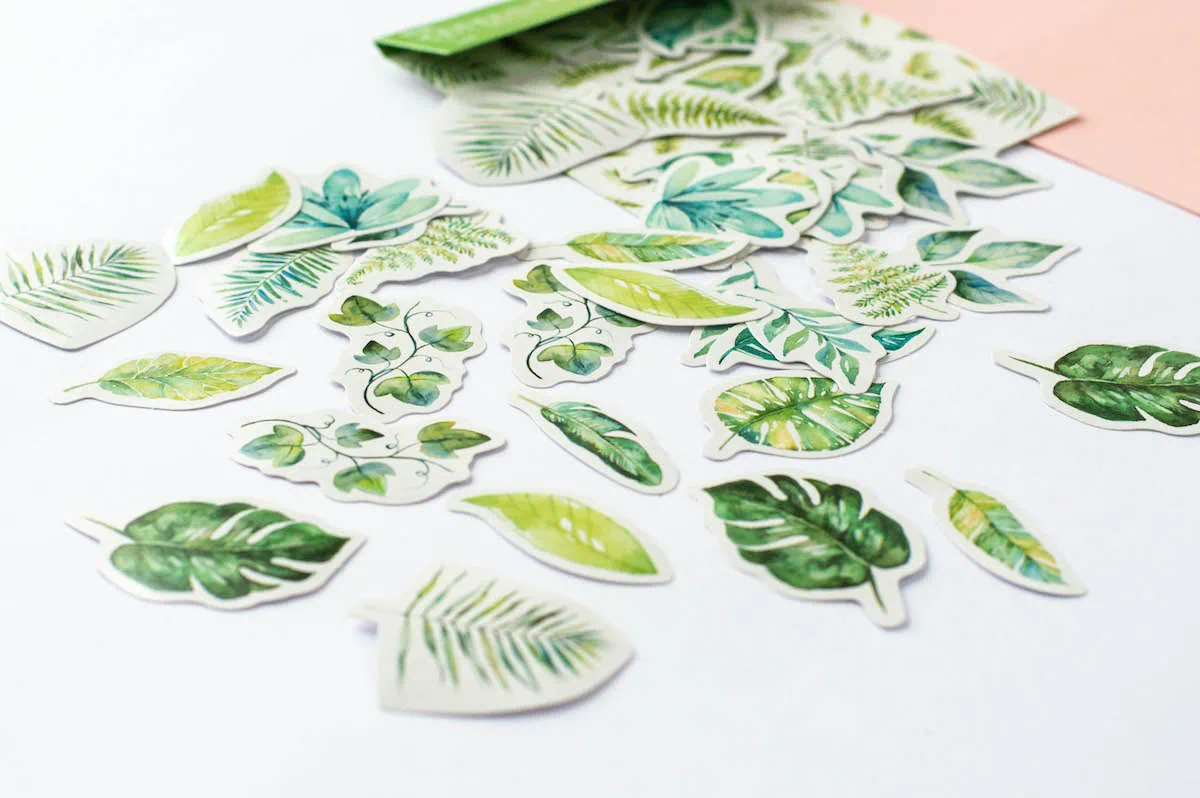 45 opinii dla Naklejki do planera „Liście tropikalne” | Naklejki do bullet journal