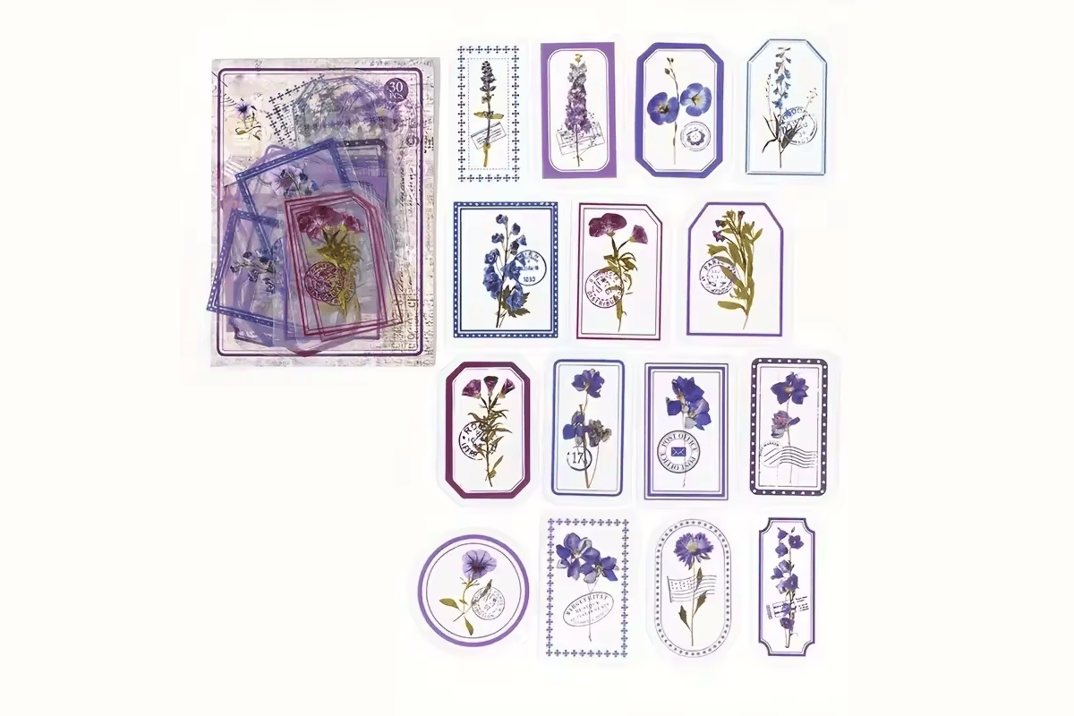 Każda naklejka przedstawia inną florystyczną kompozycję, inspirowaną klasycznymi kartami botanicznymi. To idealny dodatek do journali, scrapbookingu, korespondencji oraz wszelkich papierowych projektów. Naklejki mają różne kształty – prostokąty, owale czy koła.