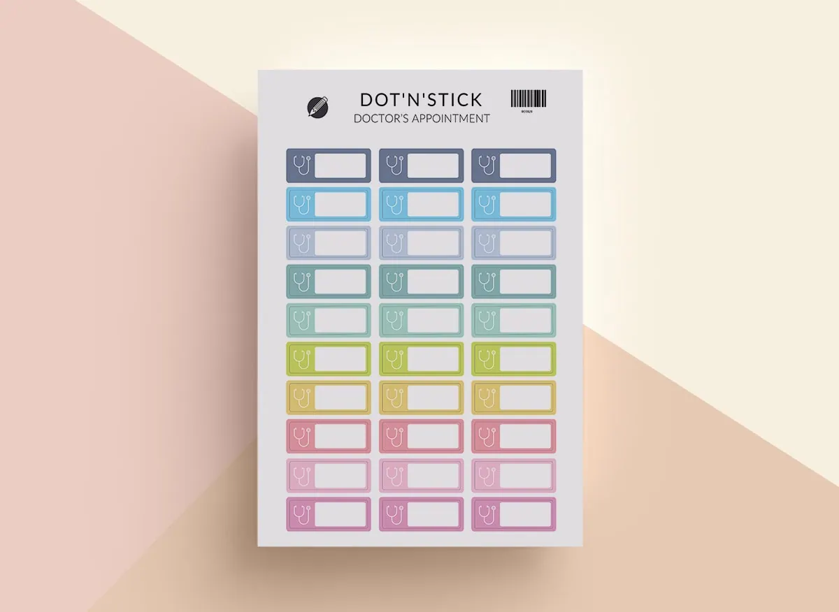 Naklejki „Doctor’s appointment” to nic innego jak przypomnienia o wizytach u lekarza Bez problemu zapiszesz na nich godzinę oraz imię i nazwisko lekarza, a także przykleisz je pod datą, na którą jesteś umówiona.