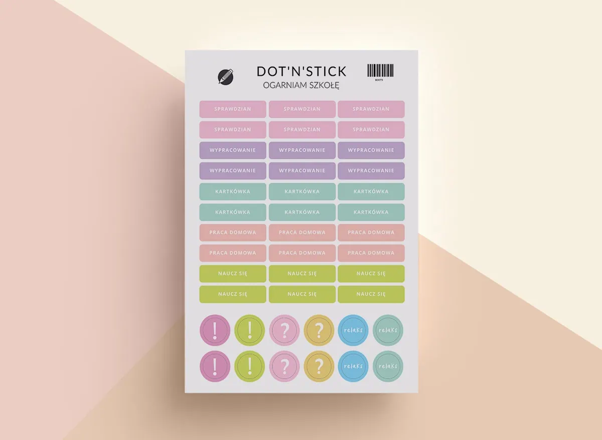 W zestawie znajdziesz naklejki na sprawdziany, kartkówki, wypracowania i prace domowe, a także te, które pomogą zaznaczyć dni nauki, ważne informacje czy… chwile relaksu. Wszystko po to, żeby mieć jasny obraz tygodnia i nie zgubić się w natłoku obowiązków.