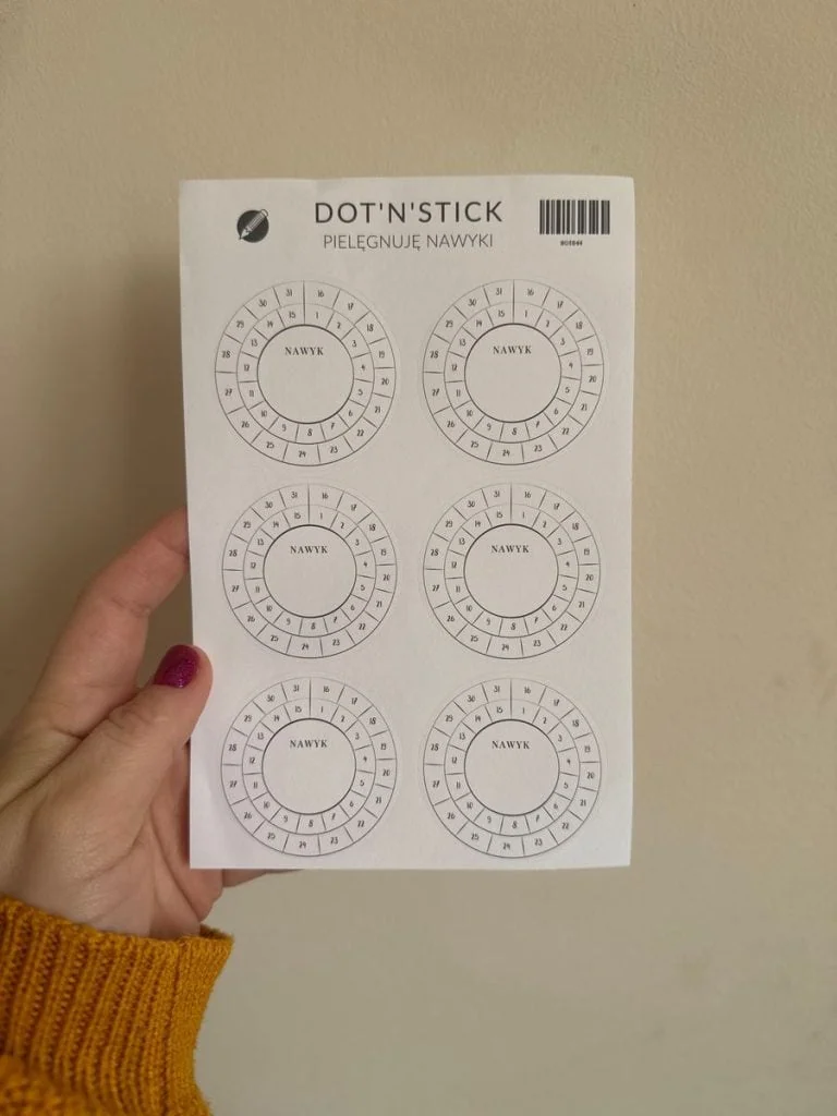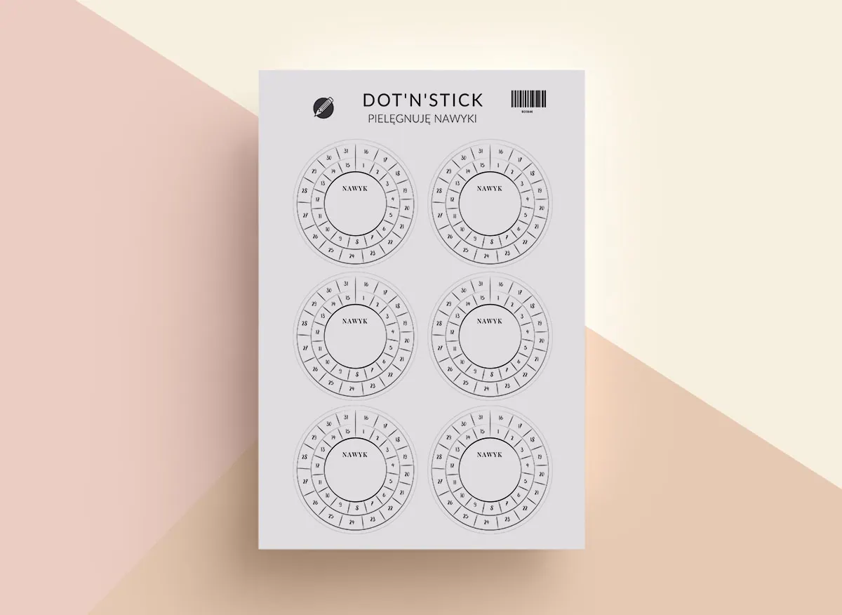 Okrągłe naklejki z miejscem na wpisanie nawyku oraz z możliwością zaznaczania dni pozwolą Ci wdrożyć nowe nawyki i systematycznie je wypełniać.