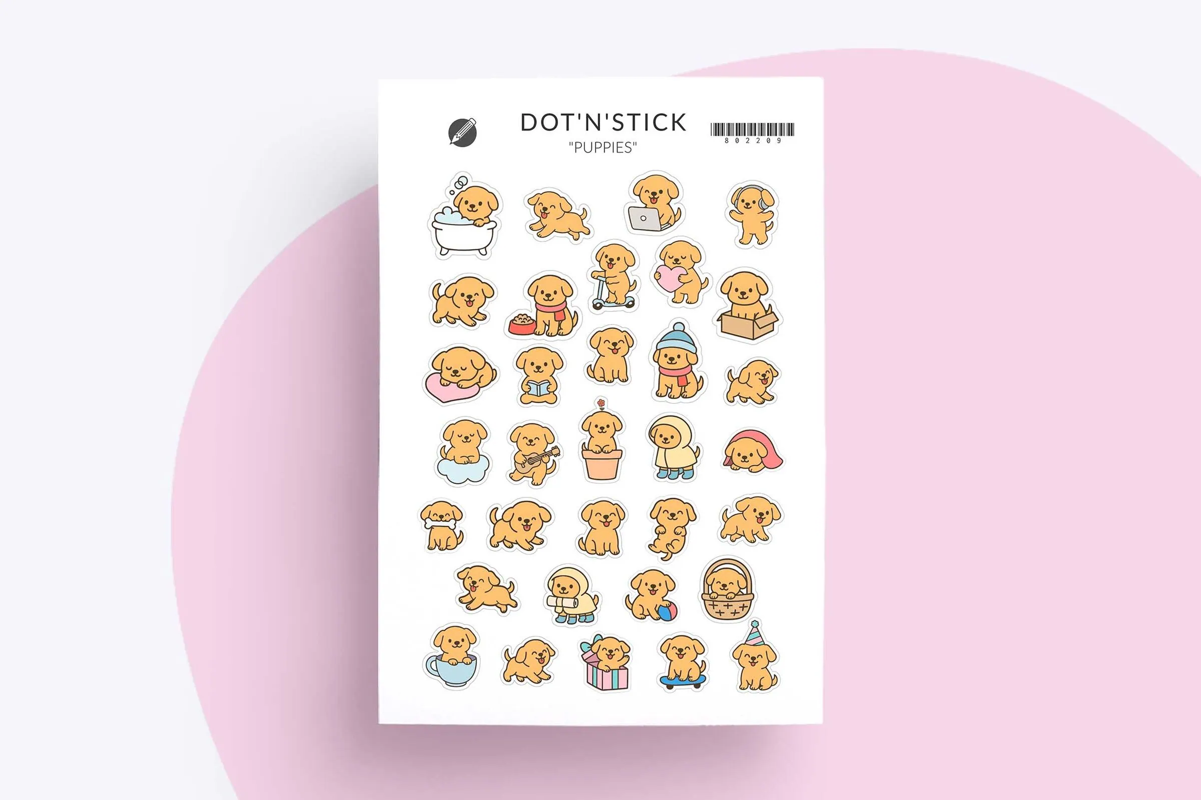 Naklejki „Puppies” to zestaw 33 uroczych ilustracji, które opowiadają małe, psie historie – od drzemek i kąpieli, po jazdę hulajnogą czy relaks z książką. Każdy szczeniaczek to inna emocja i osobowość, gotowa ozdobić Twój planner, bullet journal, kalendarz lub notatki.