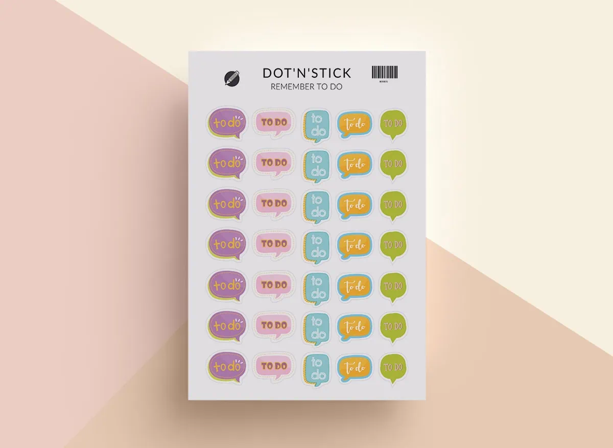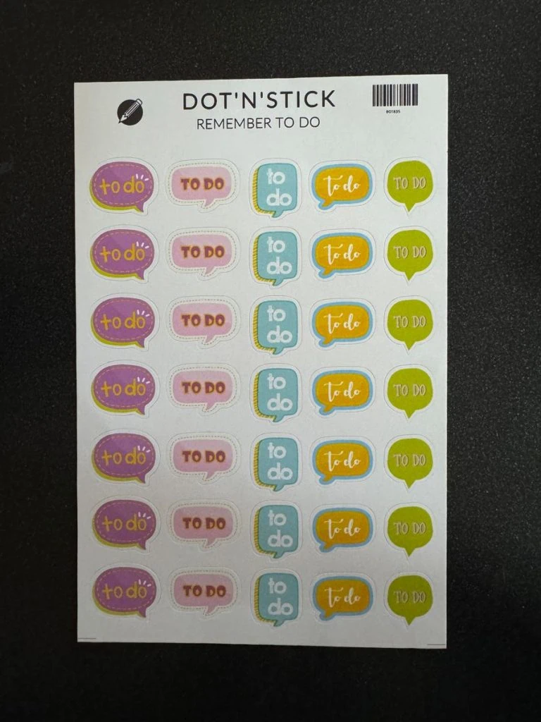 Naklejki z 5 różnymi grafikami w stylu dymku czatu z napisem „to do”. Bez dwóch zdań przydadzą się fankom bullet journali, ponieważ dadzą możliwość oznaczenia Twojej listy zadań i wyróżnią ją na tle innych rzeczy.