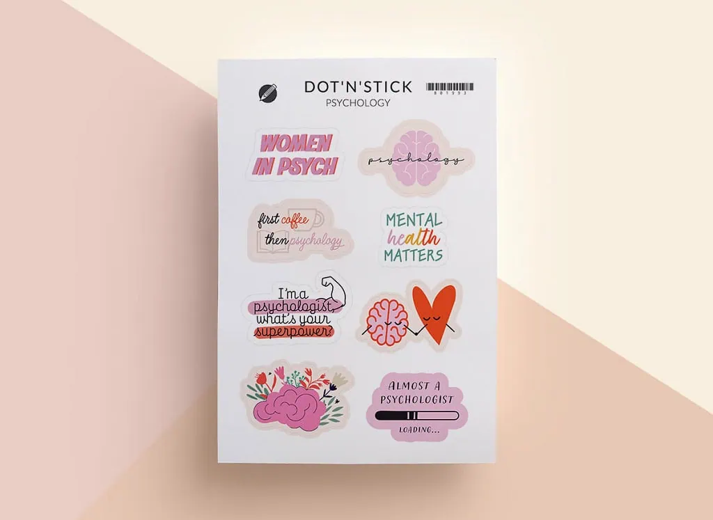 Piękne naklejki do planera i organizera dla każdego studenta psychologii! Zestaw zawiera naklejki z następującymi frazami: ozdobny napis „psychology”””, „Women in psych”, „Mental health matter””, „First coffle then psychology”, „I’m a psychologist, what’s your superpower?”, „Almost a psychologist. Loading” oraz piękne ilustracje – serce i rozum oraz mózg. Naklejki są utrzymane w różowo-czerwonej kolorystyce.