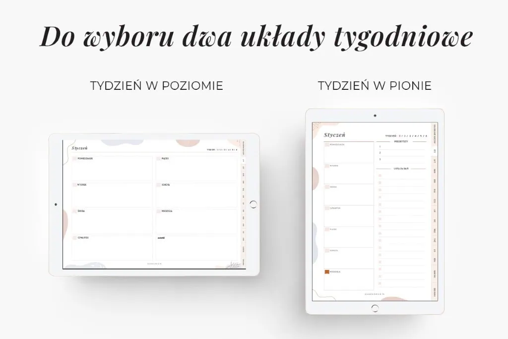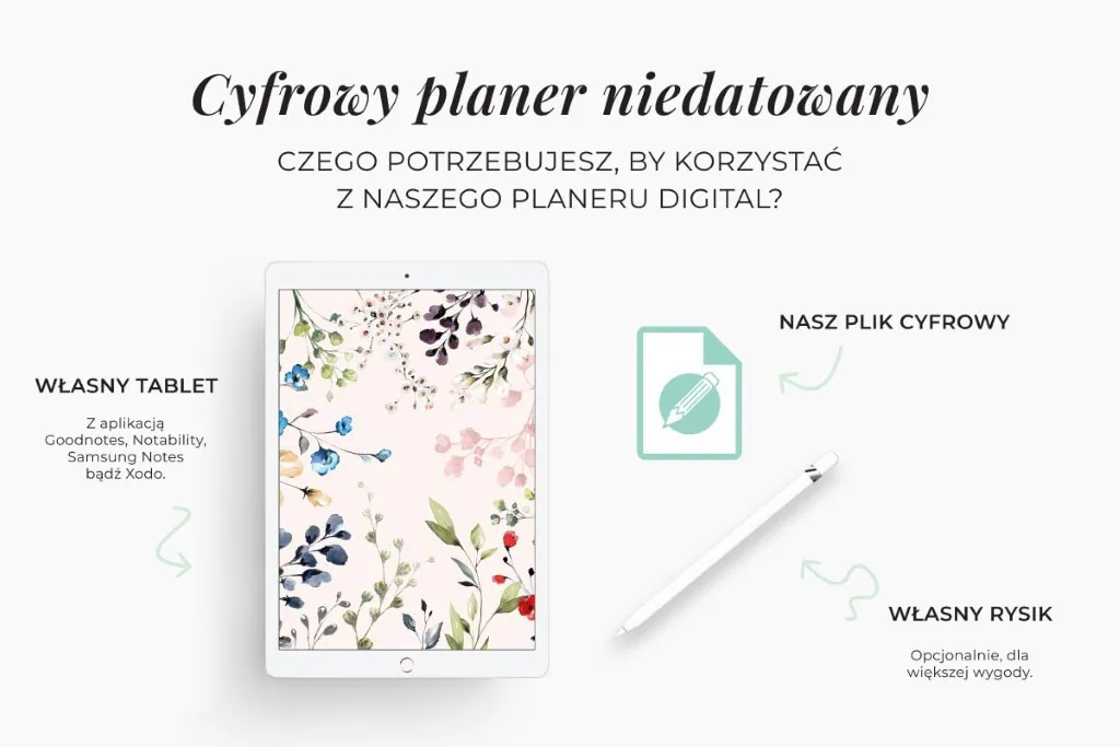 Planery do użytku z aplikacją GoodnotesNotability, Samsung Notes bądź Xodo. Z planera najwygodniej korzystać za pomocą rysika Apple lub innego z cienką końcówką.
