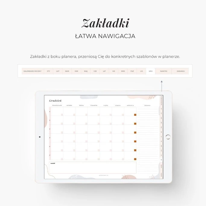 Planer Niedatowany w wersji digital to opcja dla tych, którzy lubią maksymalną swobodę w planowaniu! Planer cyfrowy na tablet nie ma dat, więc nigdy się nie przeterminuje. Co znajdziesz w cyfrowym planerze bez dat?