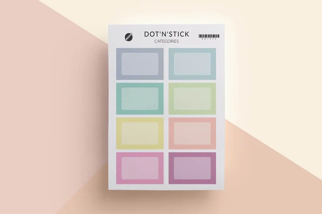 Naklejki kategorii – dzięki nim oznaczysz każdą kopertę według swoich potrzeb, np. „zakupy spożywcze”, „rozrywka” czy „oszczędności”.