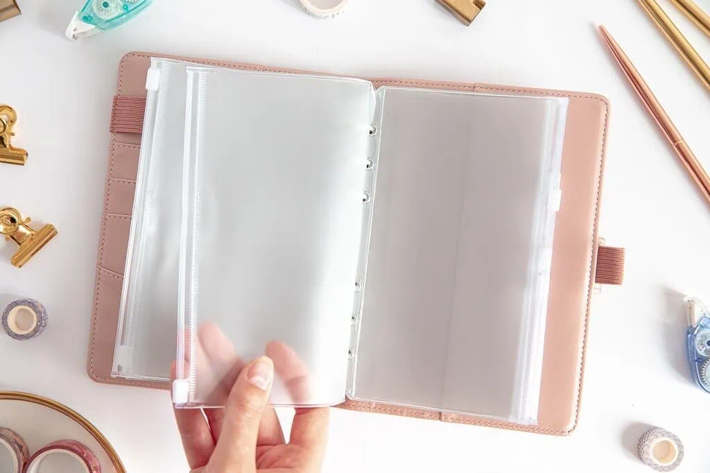 8 przezroczystych kopert na suwak – bezpieczne miejsce na gotówkę, paragony, rachunki i inne drobne dokumenty.
