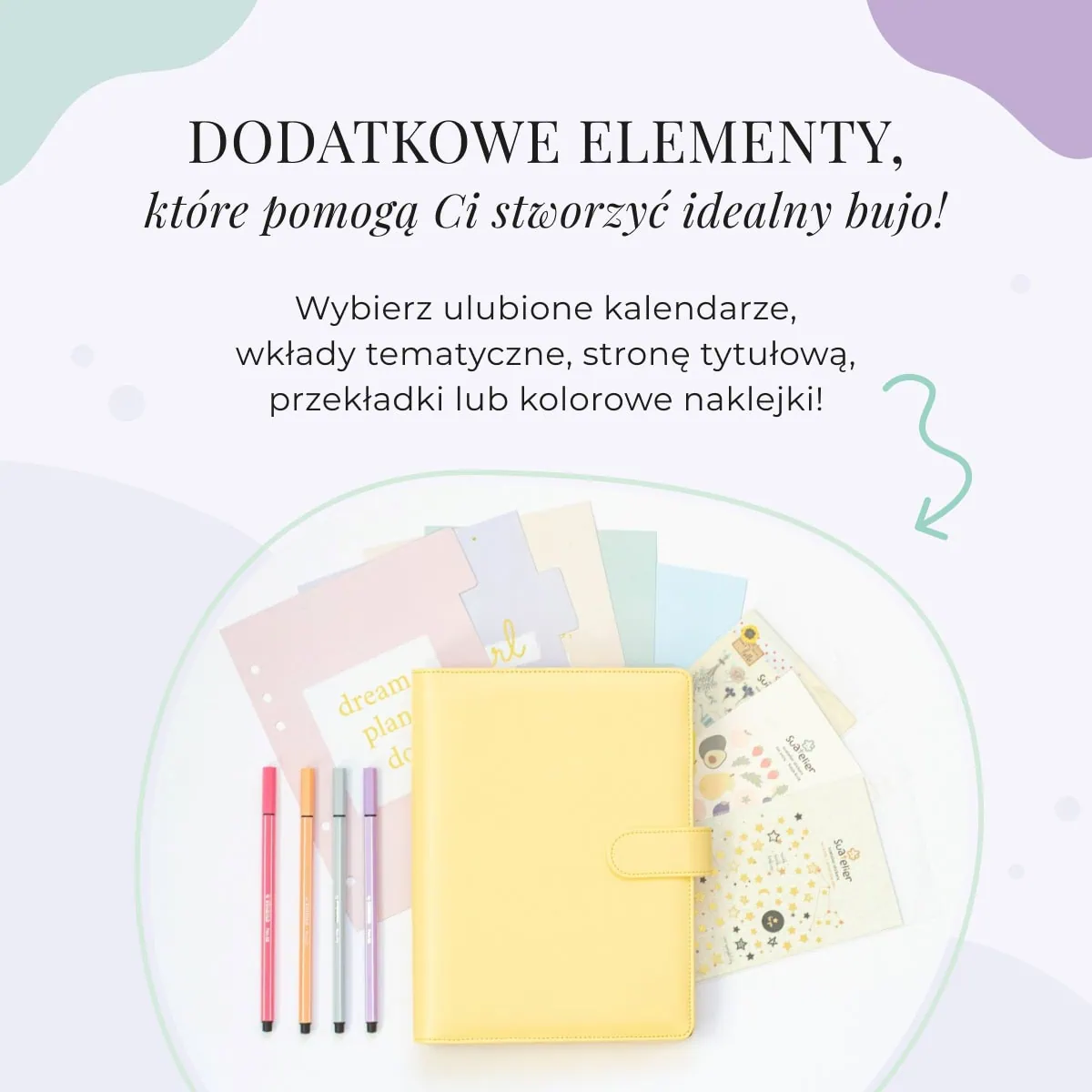 Notatnik z kalendarzem jest także świetnym pomysłem na prezent, na przykład dla kogoś bliskiego: siostry, mamy, przyjaciółki lub chociażby ulubionego nauczyciela, Zestaw jest niesamowicie elegancki, dzięki czemu osoba obdarowana z całą pewnością ucieszy się z otrzymania go. Jest to także spersonalizowany prezent. Poza kartkami w kropki, które każdy wykorzysta wg swojego uznania, można także dobrać do niego jedną z naszych pięknych, kolorowych stron tytułowych lub jeden z dodatków. Prezent dla nauczyciela? Dobierz pomocne mu w pracy karty. A może osoba obdarowywana studiuje? Dla studentów również mamy coś wyjątkowego. Dobierz wkłady do tego, czego potrzebuje przyszły użytkownik notesu.