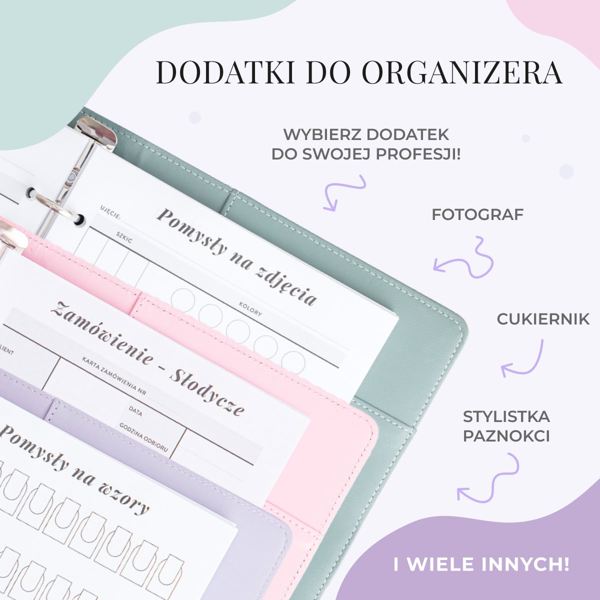 Tu nic nie jest z góry ustalone. Wybierasz okładkę, dobierasz wkłady – te, które pomogą Ci ogarnąć projekty, faktury, wielkie wizje i małe przypomnienia.