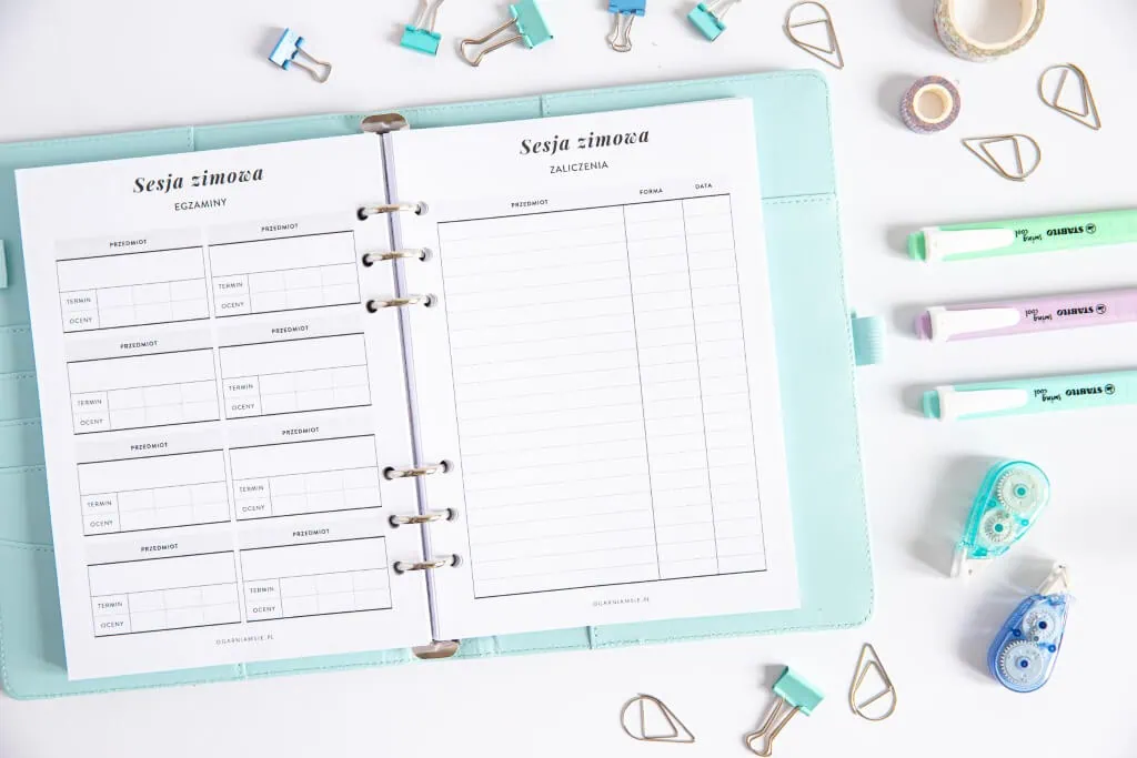 Plan sesji, lista książek, miejsce na oceny i wykładowe notatki. Bo wszystko w jednym miejscu to mniej stresu w głowie.
