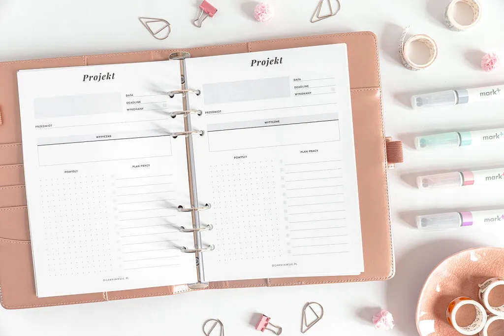 3. Okładka z ringami – Przekładasz, wyjmujesz, dodajesz – jak w segregatorze, tylko ładniej. Twój organizer dostosowuje się do zmieniających się wyzwań.