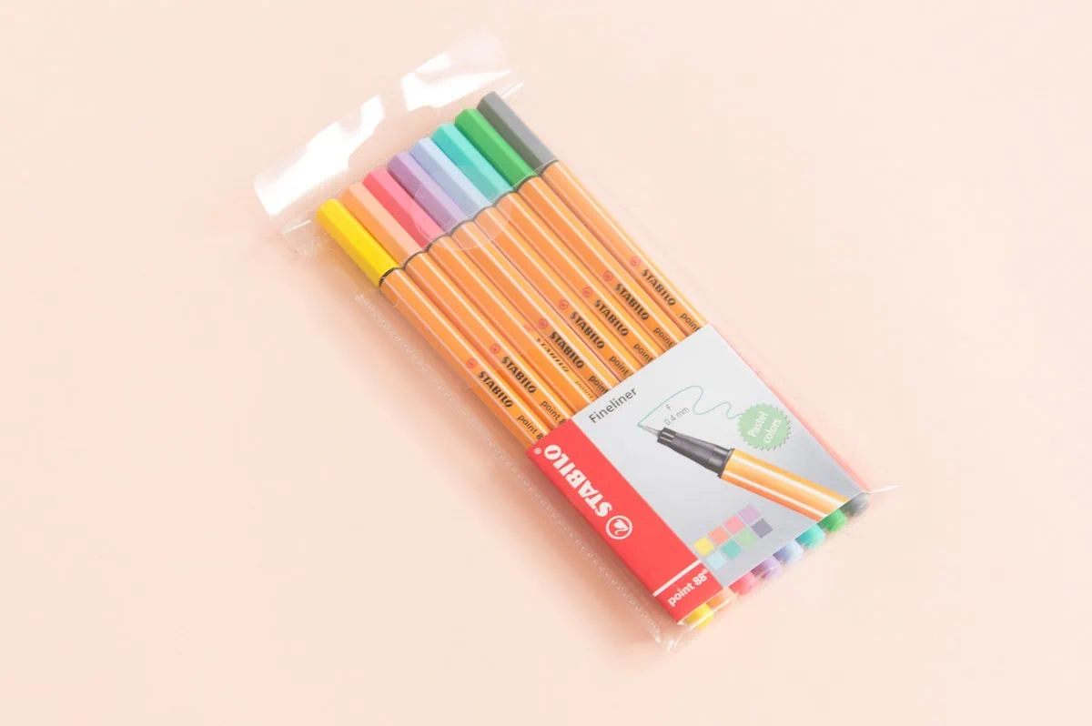 Pastelowe cienkopisy Stabilo to nieoceniona pomoc w prowadzeniu planerów, dzienników czy przy tworzeniu notatek. Idealne do zakreślania, podkreślania i zaznaczania. Grubość lini to 0,4 mm, dzięki czemu kreski są precyzyjne i dokładne. Końcówka cienkopisu jest zabezpieczona metalem, dzięki czemu cienkopis nie ulegnie łatwo uszkodzeniu. Umożliwia tworzenie bardzo małych wzorów, pisania małymi literami. Cienkopisy posiadają skuwki, bez której i tak tusz na cienkopisie szybko nie zasycha.