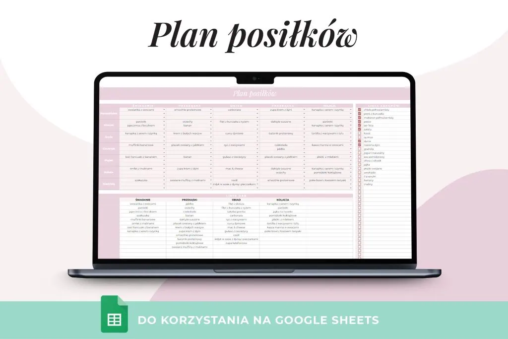 Plan posiłków na tydzień – Arkusz Google