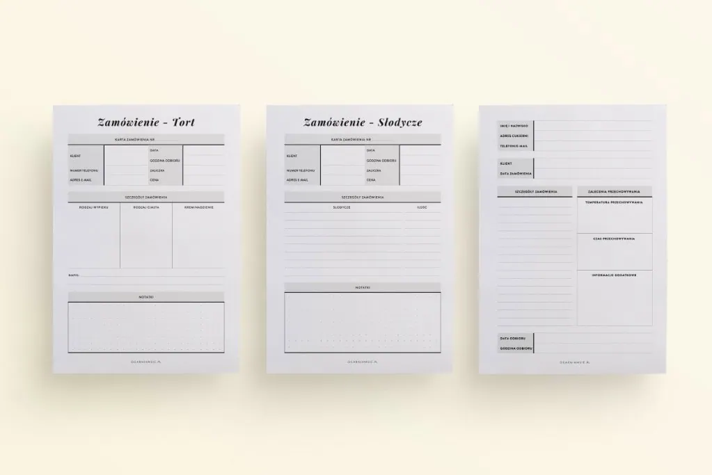 Najniższa cena w ostatnich 30 dniach: 14.90złZestaw PDF dla Cukiernika to dodatek, który zbiera najważniejsze informacje o danym zamówieniu. Dodatek składa się z części “Zamówienia — Tort” i “Zamówienia — Słodycze”. Znajdziesz też stronę poświęconą zaleceniom przechowywania. Na karcie zamówień zapiszesz: