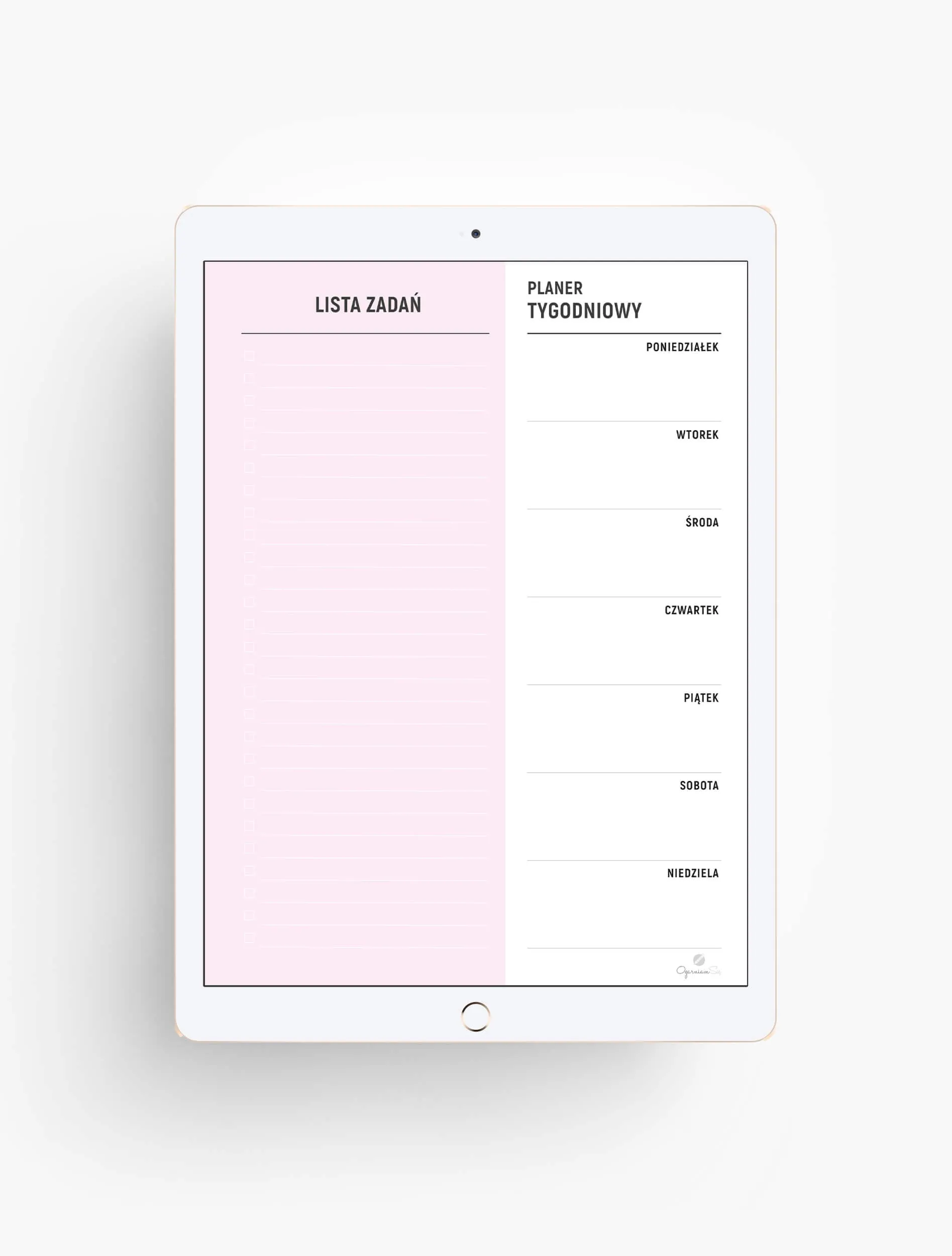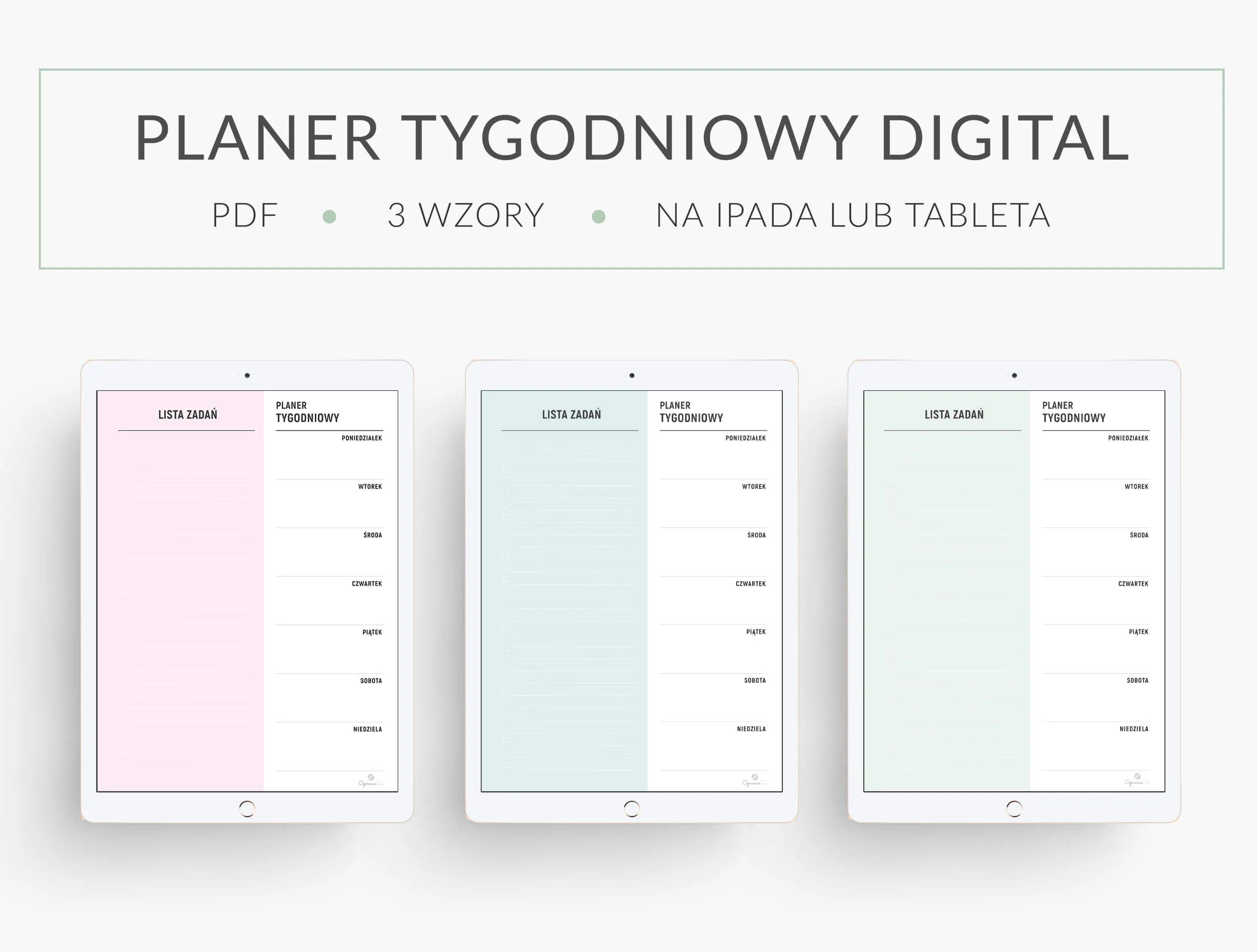 Planer na Ipada otrzymasz w trzech pastelowych kolorach. Planery do użytku z aplikacją Goodnotes, Notability, Samsung Notes bądź Xodo. Z planera najwygodniej korzystać za pomocą rysika Apple lub innego z cienką końcówką.