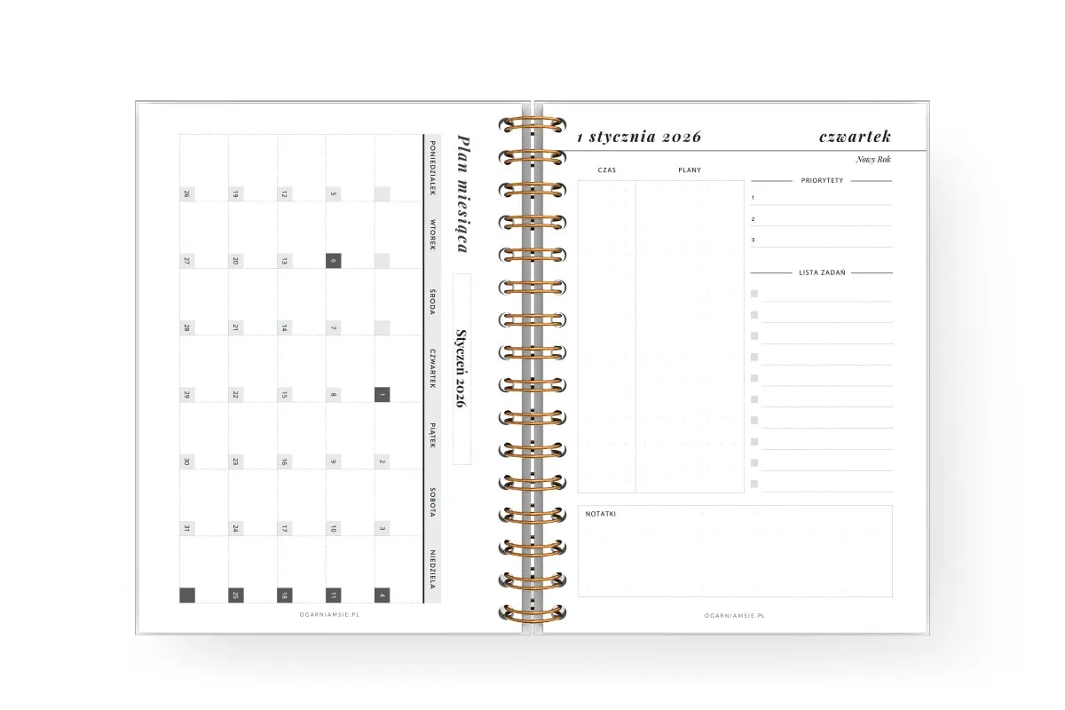 Nasze planery są dopracowane - zwracamy dużą uwagę na szczegóły. W planerach zaznaczone są najważniejsze święta, a spirala każdego planera dobierana jest przez nas ręcznie do jego grubości - żeby zapewnić jej jak najlepsze dopasowanie.