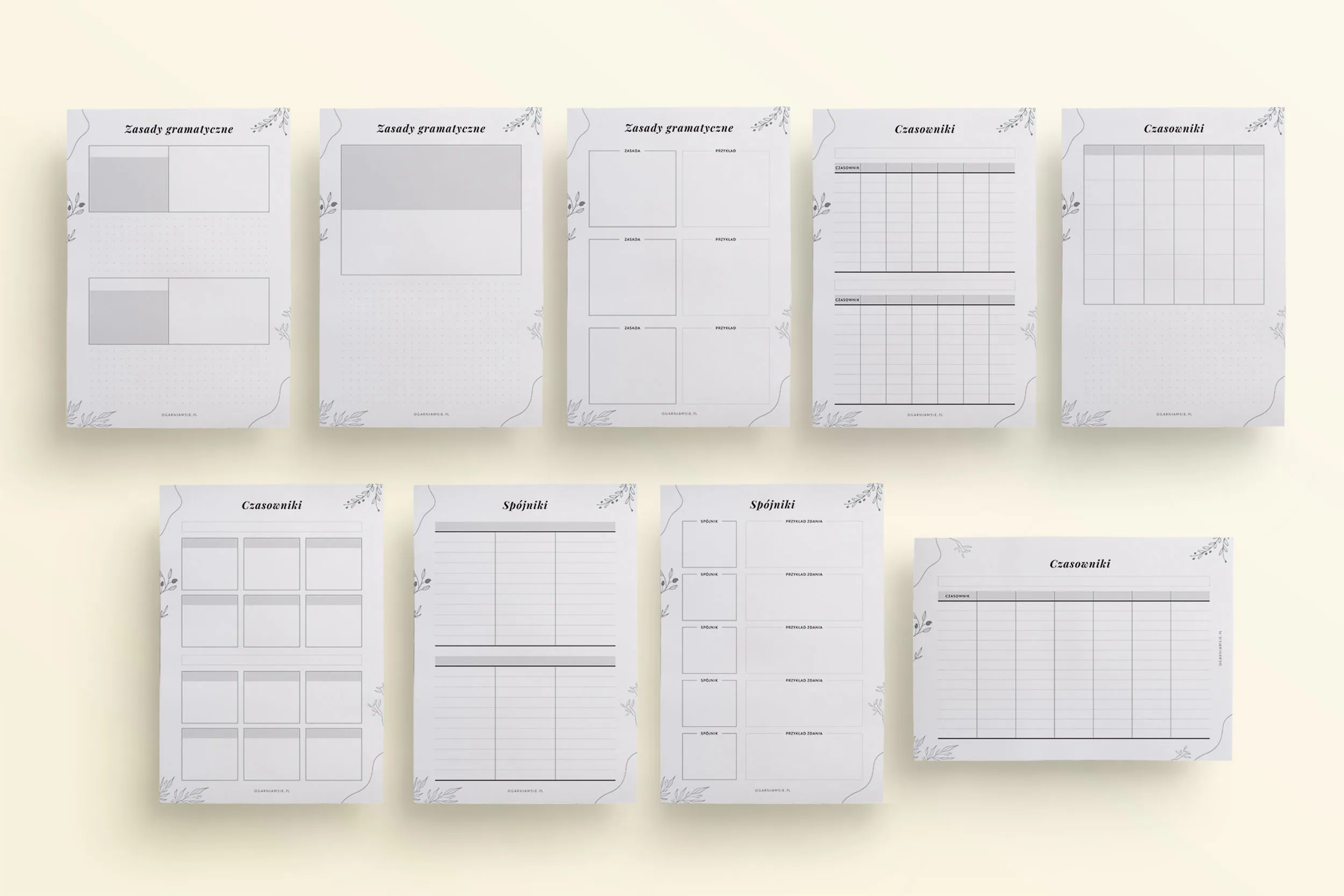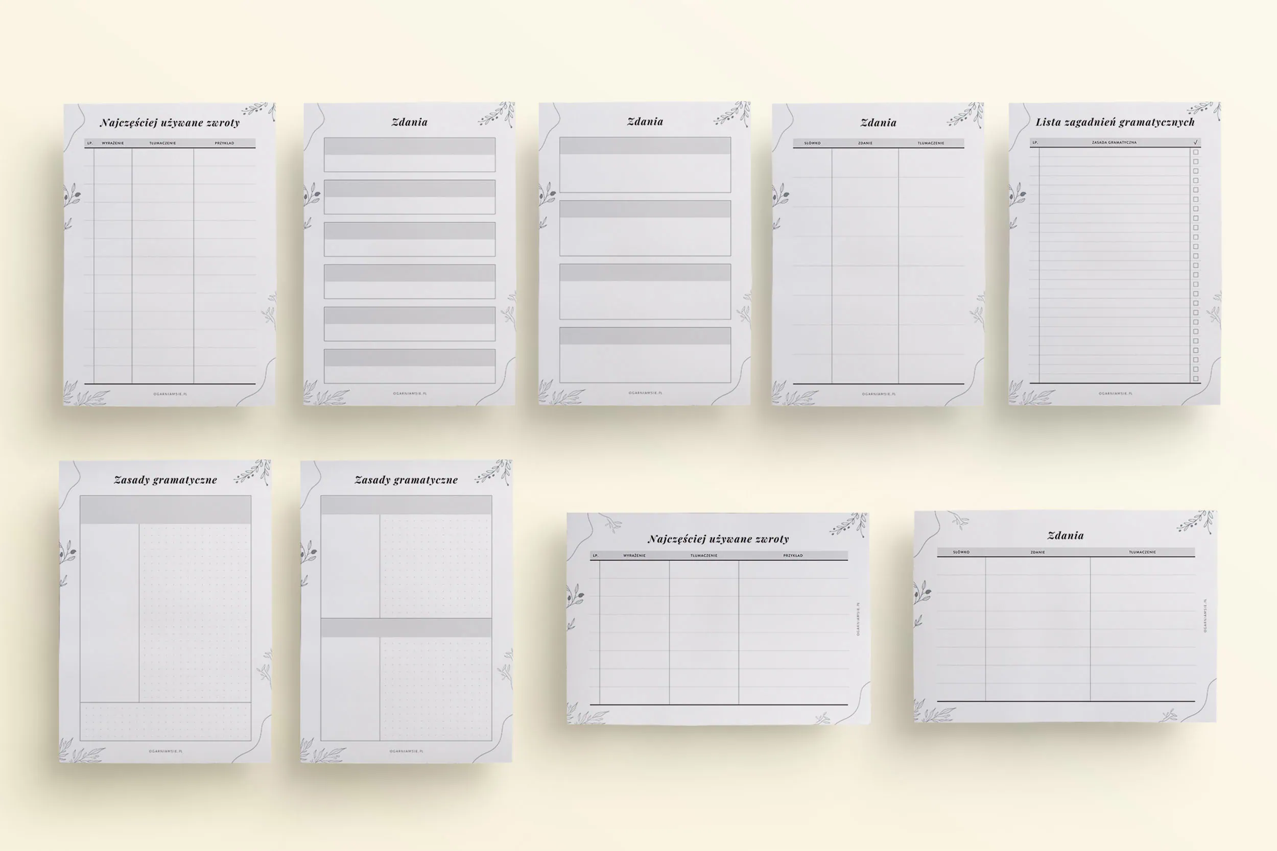 - 12 szablonów do notowania zasad gramatycznych